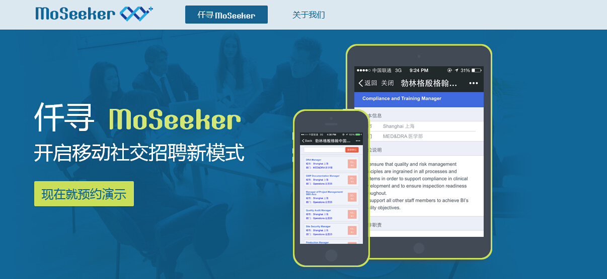 仟寻是一款基于 SaaS 的架设在云端的微信平台移动招聘系统,主要功能包括职位的移动端发 布、传播和申请,以及基于社交关系的员工绑定和内部推荐。仟寻系统记录企业和用户端所有 的发布、传播、申请和入职数据,同时可以与企业现有的 ATS(申请追踪系统 / 或企业招聘系 统)系统无缝整合。