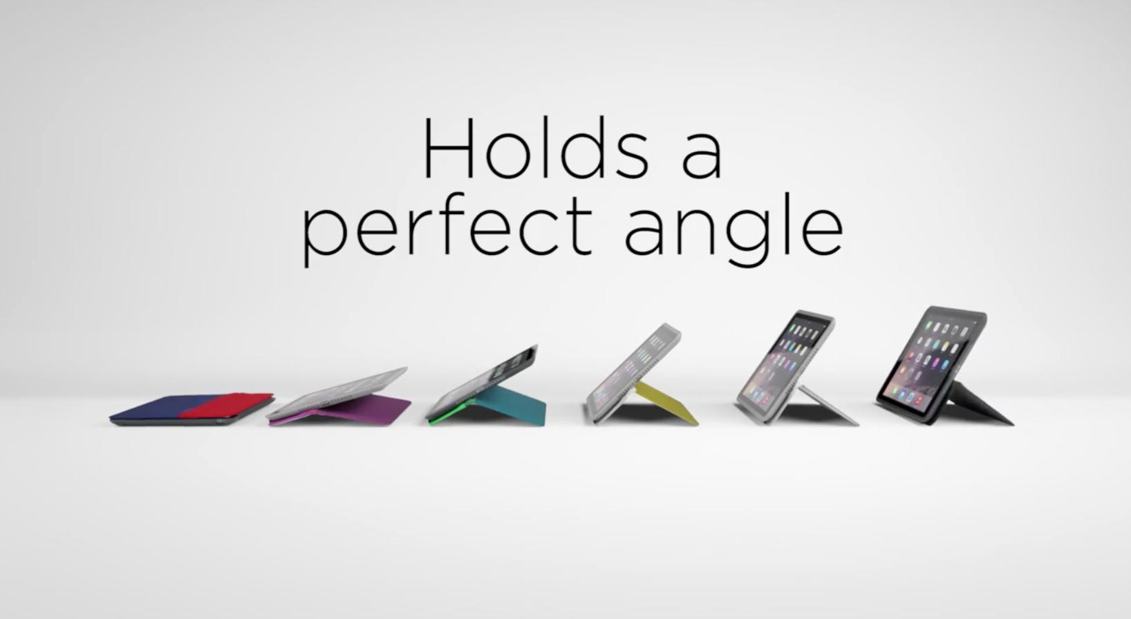 罗技推出的AnyAngle iPad保护套可以实现类似kickstand的多段式支撑,在50°的范围内随意调节,适应不同的观看角度。