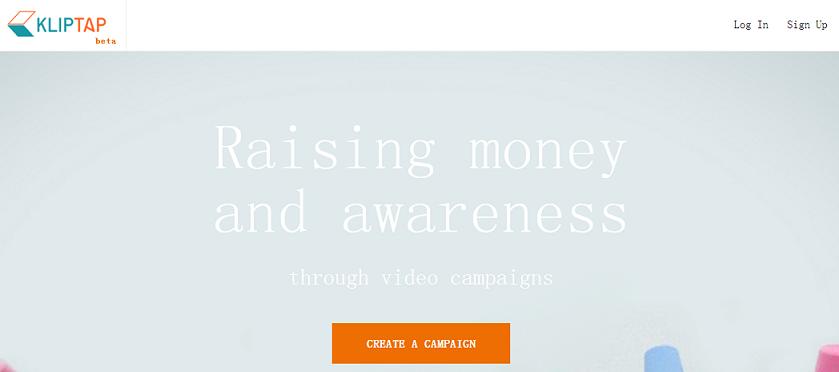 Kilptap是一个为个人设计的、用于发起募捐活动并邀请朋友加入的视频网站。用户可以在Kliptap里扩大你的影响范围、介绍你的行动初衷、邀请你的朋友们在他们的社交网络上为你赚人气, 很像之前的“冰桶挑战”。它算是另一种形式的众筹,特点在于用视频“说话”激发互联网络里的连锁反应,从而实现募集善款以及扩大活动影响力的目的,最后从中收取5%的手续费。