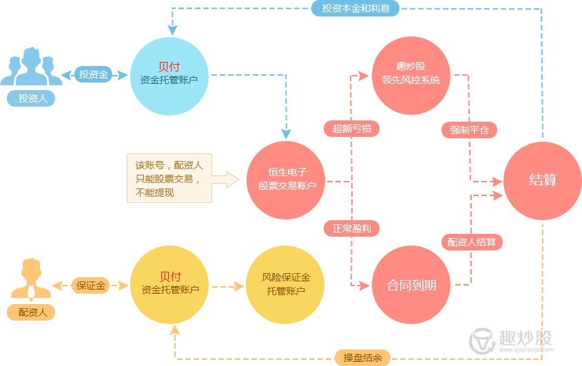 从业务模式上来看,趣炒股通过“交易账户实时监管+第三方资金托管+大数据风控”的思路来控制平台借贷双方的风险。第三方资金托管不用赘言,主要想聊聊另外两项。