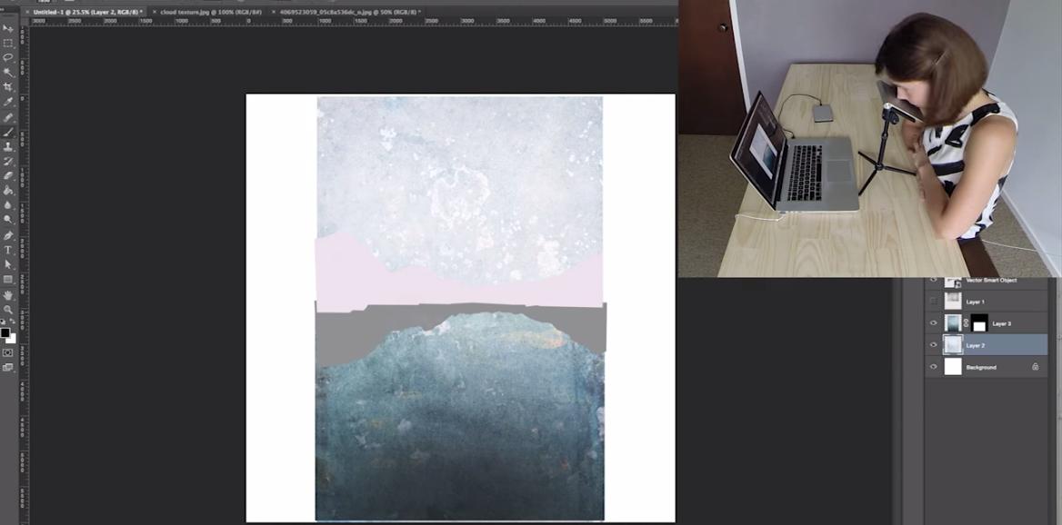 突然有一天(目测基本上是躺床上玩手机的情况),她不小心用鼻子碰到了触摸屏,结果发现这样点击甚至划动,比她以往尝试过的任何方法都要有效。当她激动地打开Photoshop,尝试着用鼻尖画出一些东西来,感觉似乎比脚趾靠谱很多。后来,她的很多论文作品都是这样用iPad搞定的,而老师们都没有发现的样子……