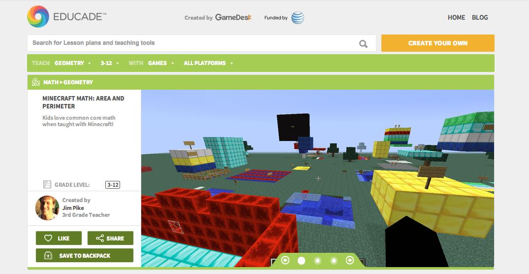 这里举个栗子,比如有位老师他在自己的课堂上尝试了用Minecraft来让孩子们在边娱乐的时候边完成数学知识的学习,且发现结合Minecraft带来的教学效果非常之好,他便可以在Educade在分享这一经验,甚至将他自己的备课方案、上课步骤都拆解为详细的图文说明,放到Educade上去。这样一来,其他老师便可以更低门槛地来尝试用科技的方式来教学了,并且每个老师还可以在社区内交流各自不同的教学经验和成果。