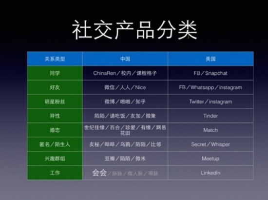 可以看到,在美国能够并存的多个社交产品的巨头,之所以能够并存,要么是占据着几个不同的关系类型,要么是市场足够大,能够容下一些细分。