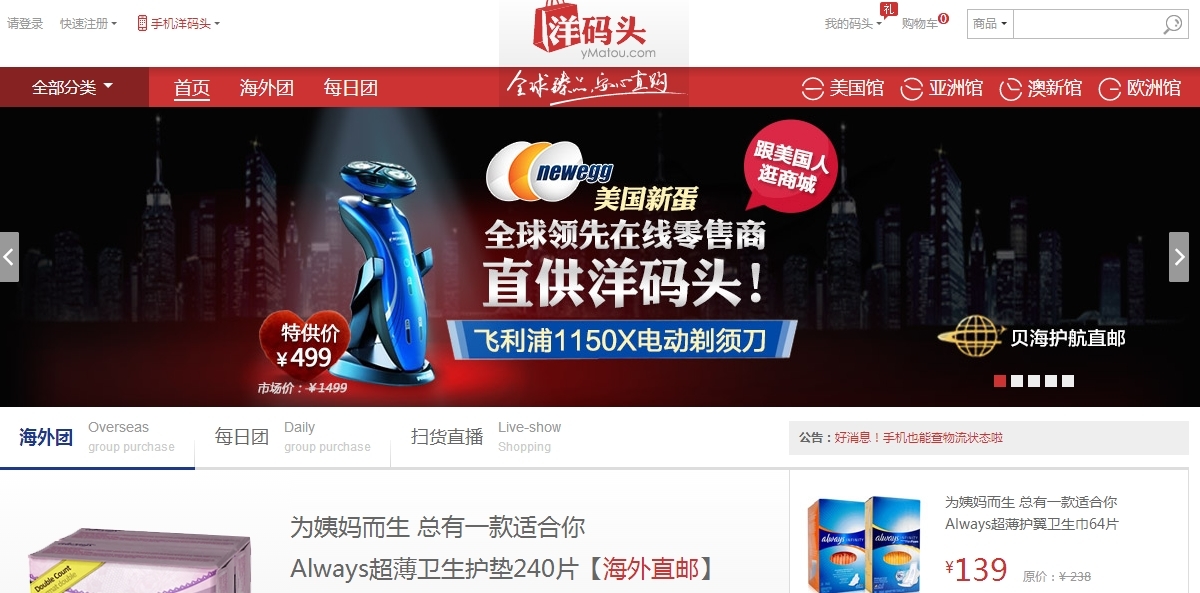 一、跨境电商“洋码头”获赛领国际基金领投1亿美元B轮融资
