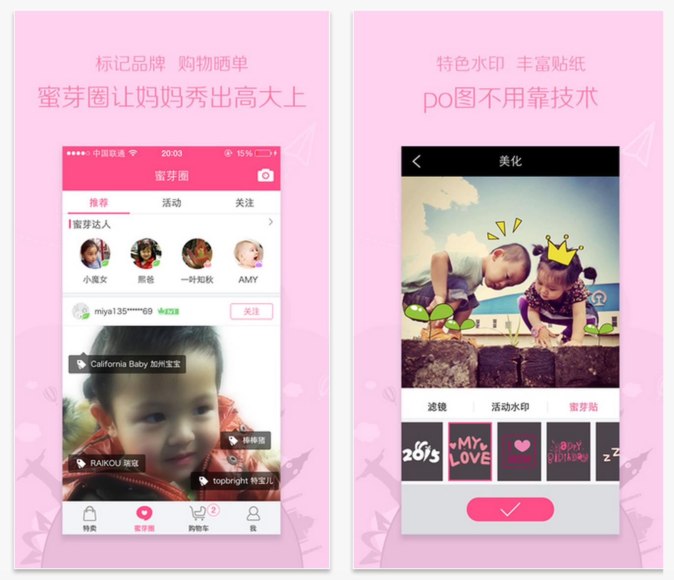 进口母婴特卖平台“蜜芽宝贝” 更新APP,加入圈子功能,用“图片+标签”的方式连接社交和电商