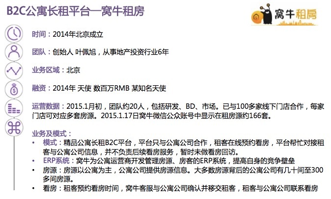 公寓租赁平台:如窝牛公寓以B2C的模式为租客提供多种品牌的公寓预约看房服务;