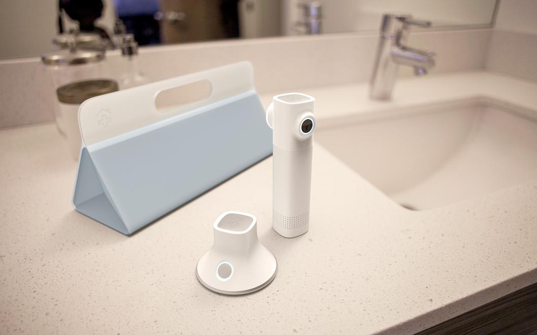视频会议摄像头则可以安置在镜子上,向医生传送视频信息,而且内置的微型投影仪可以将图像投影在别处。除此之外,还能追踪身体运动情况、心率和温度。