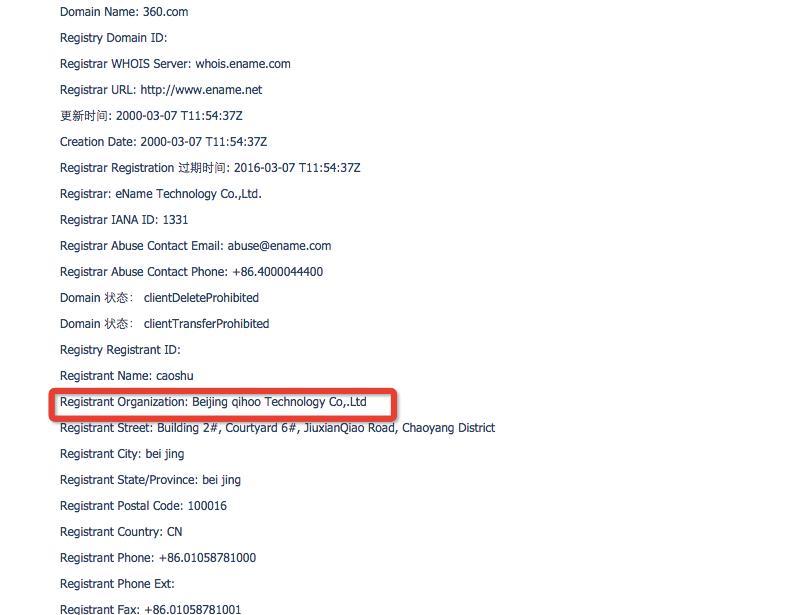 据IT之家消息,奇虎360公司已于2015年2月3日收购国际顶级域名360.com,收购价格为1700万美元,约合人民币超过1亿元,刷新了国内公司收购域名的最高价。目前点击360.com已经跳转到haosou.com(这是360旗下的搜索网站)。查看360.com的whois信息,已经归属于北京奇虎科技有限公司。