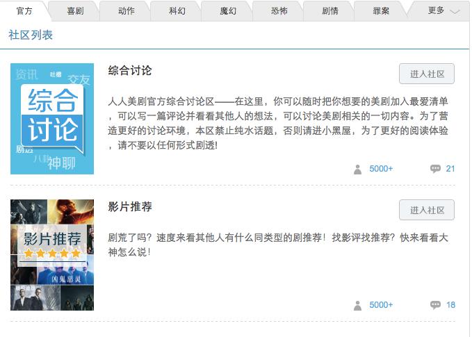 而且,“人人美剧”官方强调,社区是人人美剧最关键的功能模块没有之一,想必是希望沿袭多年来忠实用户形成的社区氛围,包括综合讨论区和影片推荐区两部分,前者倾向于交流美剧日常,后者则用于更专业的求剧和让大神进行剧集推荐,发布影评。社区在形态上沿用了BBS的标准形态。