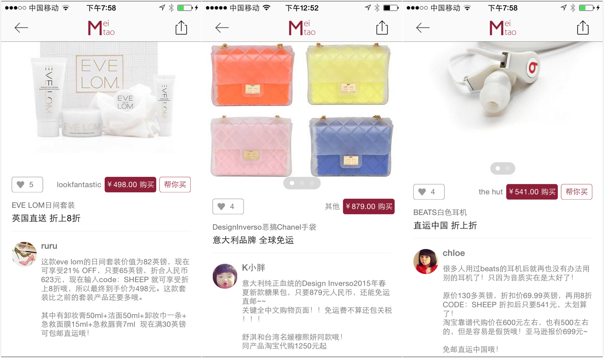 魅淘(iOS/Android)是一个针对女性用户的第三方中立导购平台,它的特点是不参与购买环节、站在消费者的立场上帮助她们筛选性价比更高的网购商品。平台用人工运营的方式帮用户找到价格最优的产品,当你点击具体某个商品,会发现有个后台小编用活泼的语言向你推荐这个商品的特色,还帮你对比了其他几个来源的价格。