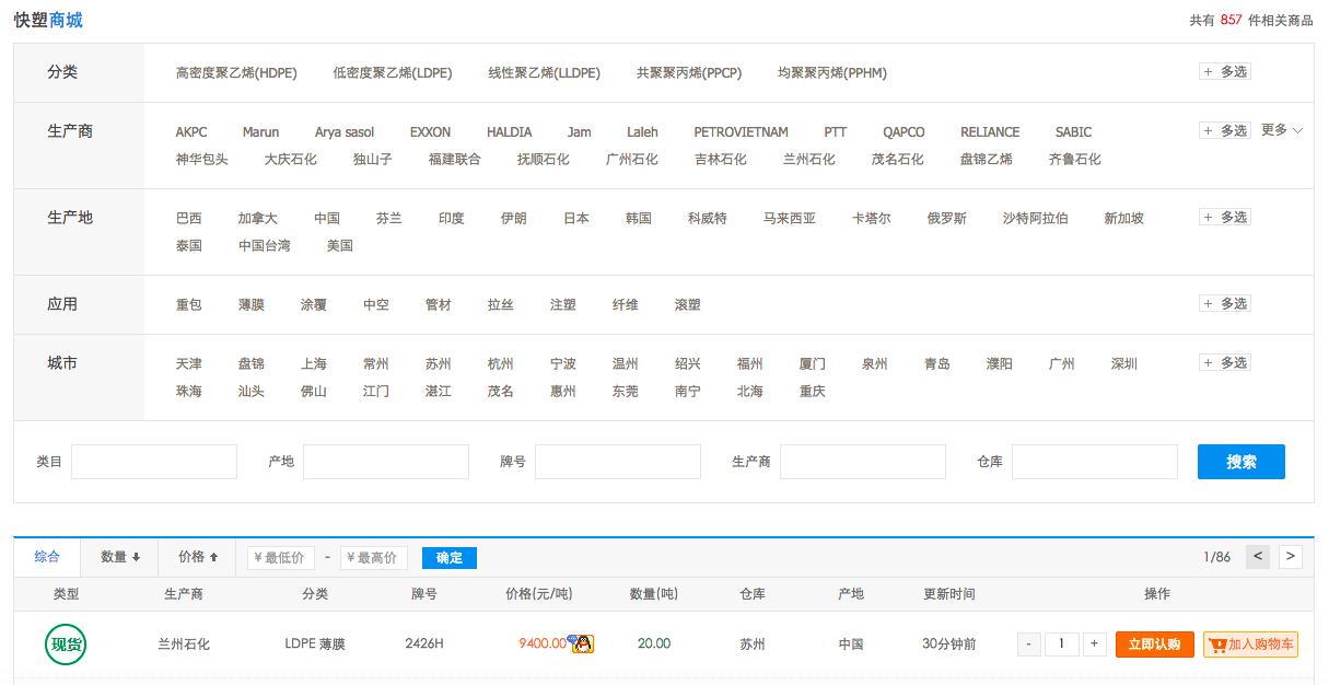 比如快塑网会提供撮合服务,让卖方实时更新价格与库存(平台也会有交易员实时跟踪变动的橡塑材料价格),让买方来提需求,然后对报价进行搜索,提供最优化的实时撮合。这也是垂直B2B平台的魅力之一,它不仅仅提供平台让买卖双方自行对接,而是更深入地参与到交易环节,通过服务促成双方,提高交易效率,而不是像早期传统的标准化B2B平台因为没法让供应商花费精力即时更新价格,导致买方还是只能线上获取商家信息,最终还是得到线下去达成交易。