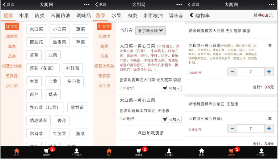 “大厨网”(微信号:houchuwang)就算其中玩家之一。不过,和美菜、链农等公司选择自己去做采购方,在线收集餐馆的采购需求后到一级批发市场统一采购,并进行分拣、配送到餐馆门口的模式不同,“大厨网”选择了不做重线下且需要大量烧钱的方式,而选择更轻的平台模式来进行。