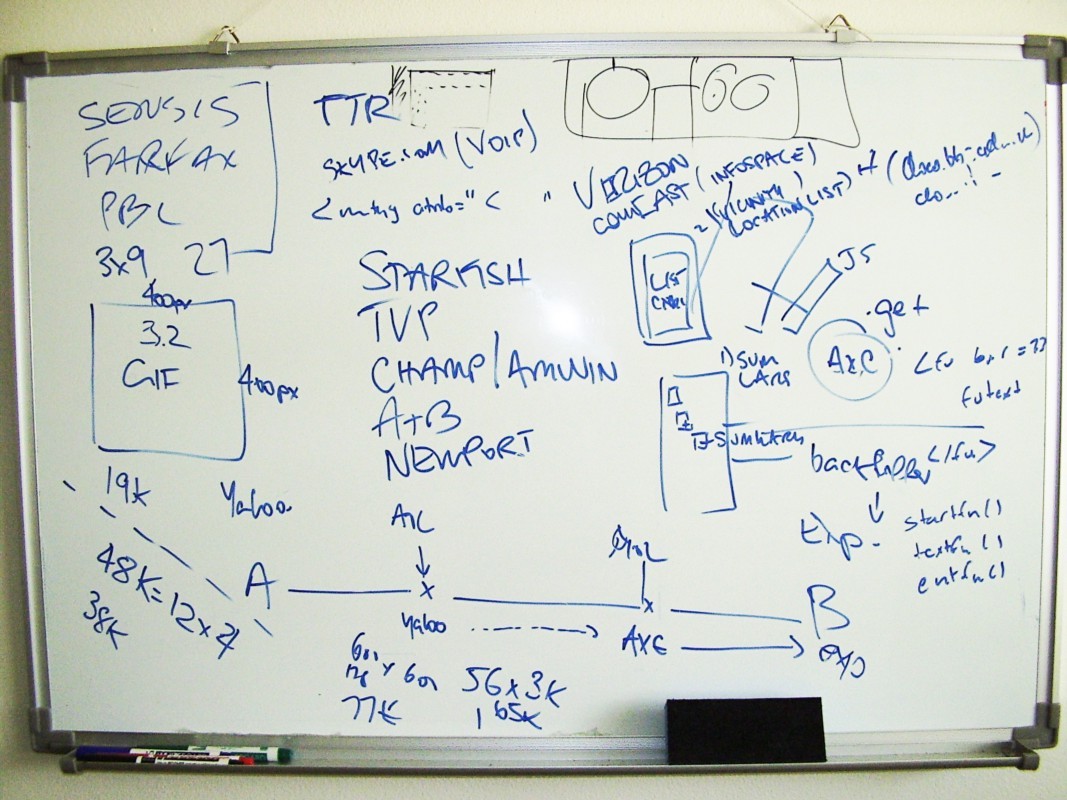 就是在下面这张白板上,Where 2 Technologies给Larry Page 解释了技术原理、他们的想法,当然还列了其他潜在的买家或者投资人。