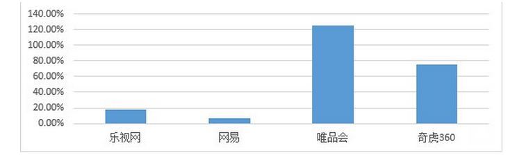 净利润基数仅仅是公司价值评估的一个方面,企业价值很大程度上取决于其持续增长和盈利的能力。网易作为老牌门户网站,游戏早已成为其主要业务,占其总营收的90%以上。由于其本身净利润基数较大,并且游戏行业(主要指端游)出现下滑,保持7%的增长率实属不易。唯品会已多季度持续实现翻倍增长,因此市场给予其百亿美金的估值。然而乐视网相对于唯品会和360来说,其增长率远远低于后两者。四大网站的净利润增长率如下图所示: