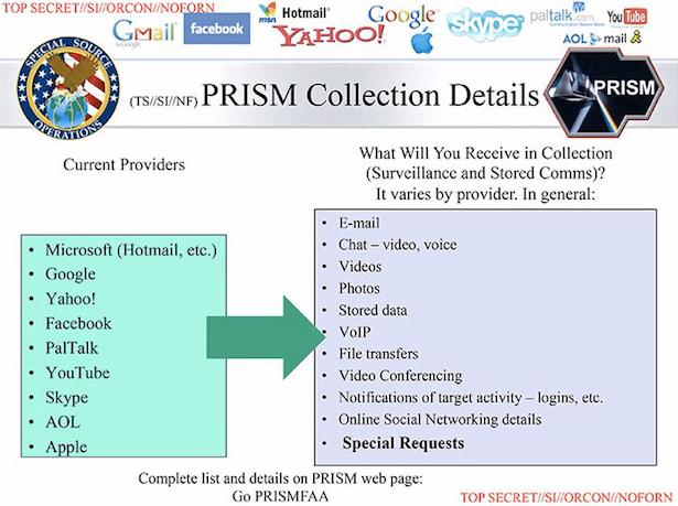 这些个人信息通过NSA棱镜(Prism)和UpstreamCollection两种方式获得,Washington Post就曾爆料,极大一部分私人信息直接从美国互联网公司获取,这些公司包括大家熟知的Google、雅虎、FB、Gmail等。