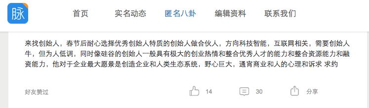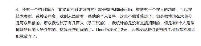 这个与招聘网站的思路类似,都是发现你需要的简历。但差别是招聘网站往往需要收费,像Linkedin、脉脉这样的网站往往是免费的。