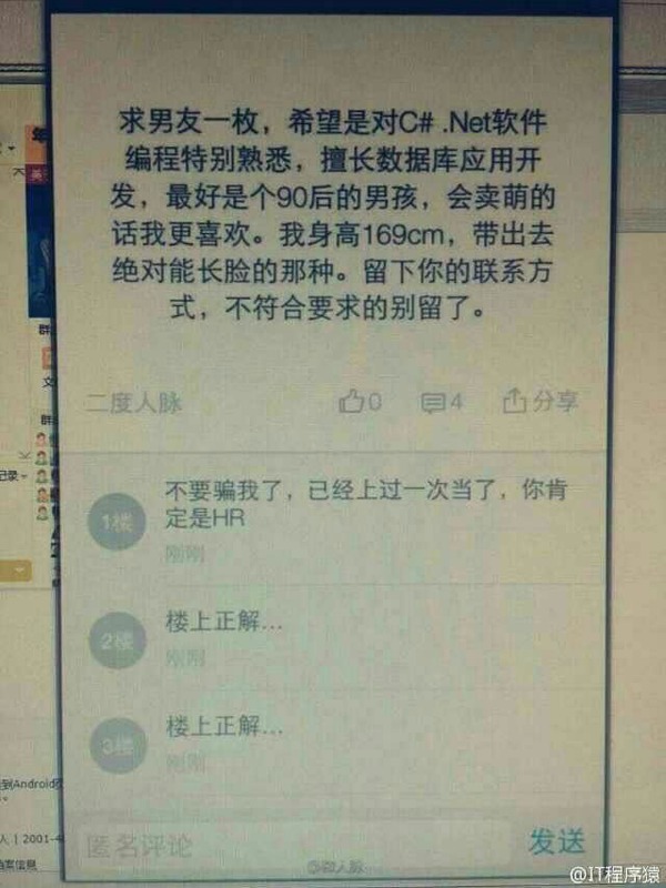 汉纸们,当你在陌陌、微信、花田等一切互联网上看到妹子们主动找你们,请不要得意,因为她可能只是HR!