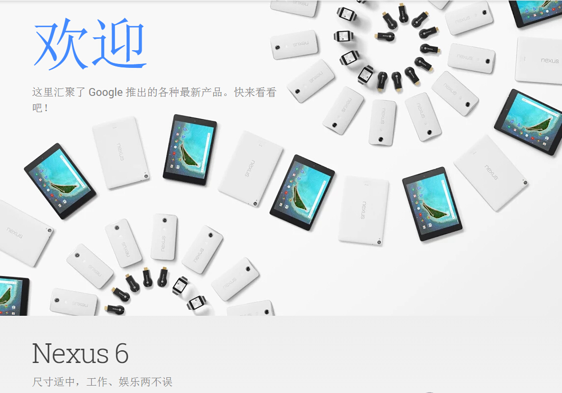 在该网站上,用巨幅的图片展示了Google出品或搭载其系统的一系列硬件产品,包括Nexus 6手机,Nexus 9平板电脑,Android Wear智能手表,电视、游戏及视频设备Nexus Player和Chromecast,Nest装置,还有一系列保护套、充电座、耳机配件等等。当然,新发布的Chromebook Pixel也会在这里出售。不得不承认,Google Store的网站风格和苹果的在线商店很相似。