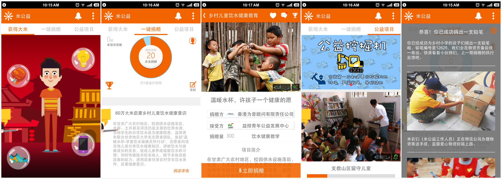 对不少人来说,小学时,公益约等于捐书;大学时,公益约等于支教;工作后,公益约等于捐钱。但公益真的只是这个样子么,移动互联网时代的公益还应该是这个样子么?所以,米公益推出的时候,大家才发现原来公益的门槛可以这么低,用户只需要答下题、走走路、打打电话,完成这些简单的事情,就可以获得米币,捐给需要帮助的项目。