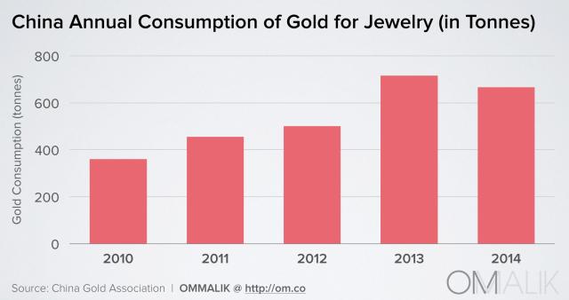 此外,中国市场可能也是苹果推出金色款的一大原因。我不知道如果乔布斯在世会不会同意生产金色的笔记本电脑和iPhone,但是从销售的角度,我们可以看到,土豪金版的iPhone 5S问世后,很快就出现供不应求的情况,尤其是在中国和其它一些亚洲国家。估计金色版MacBook上市也会出现类似现象。我想这主要是因为中国人对于黄金饰物有着特别的喜爱。2014年,在黄金的销量普遍下降的情况下,中国对黄金的需求依然十分强劲。