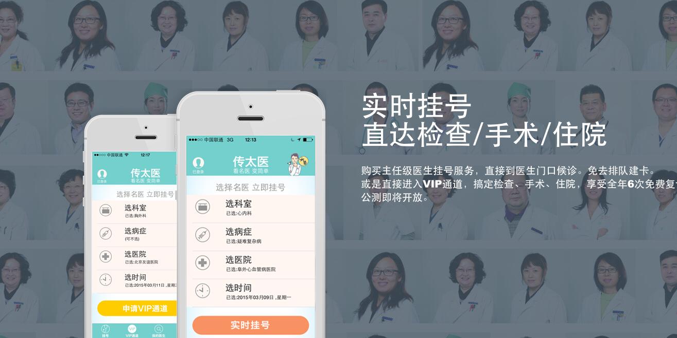 传太医是围绕三甲医院名医的 O2O 医疗服务,挂号预约问诊的时间都是由你选择,看病当天也会有专员递交病历并导诊到医生门口,并且问诊完毕后续医生也会根据你的病状对你进行相应的电话回访。