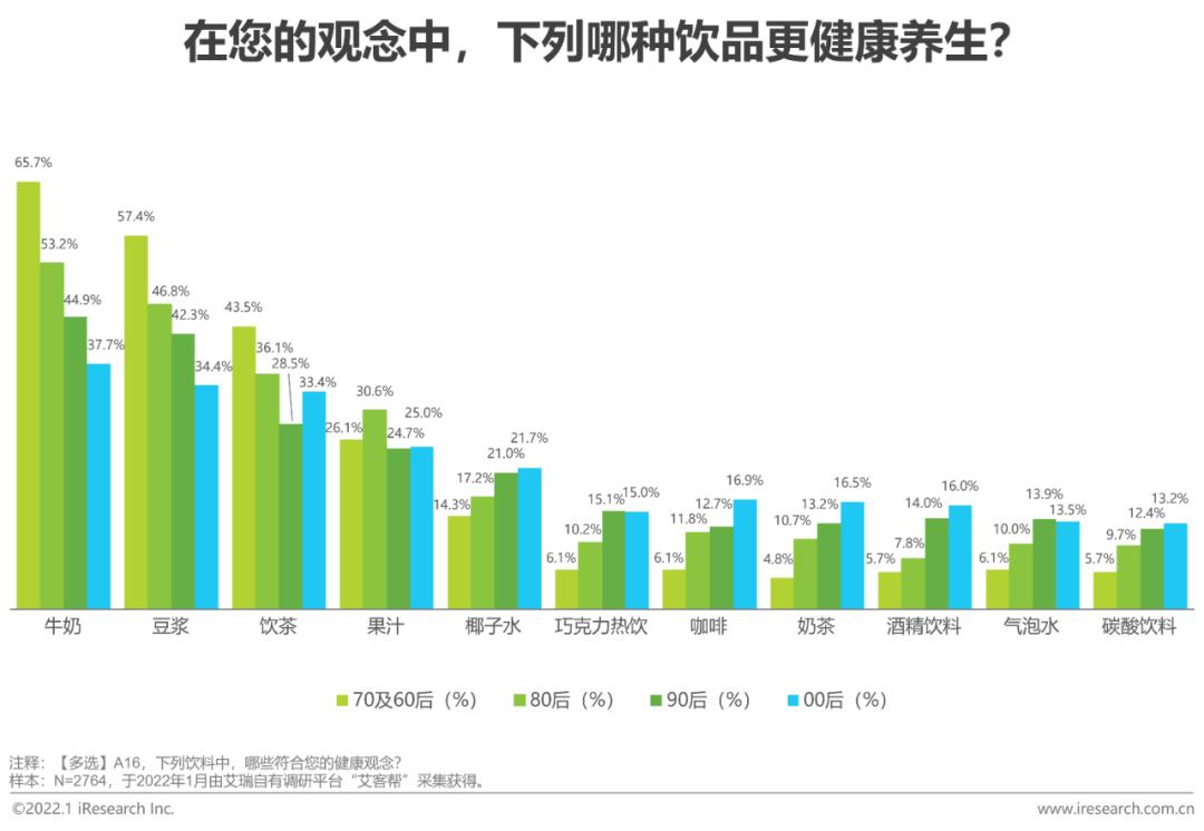 高蛋白含量的牛奶豆浆胜过传统茶饮,得到更多养生健康认同;但年轻已经呈现出“不喝没有味道的水”的趋势。