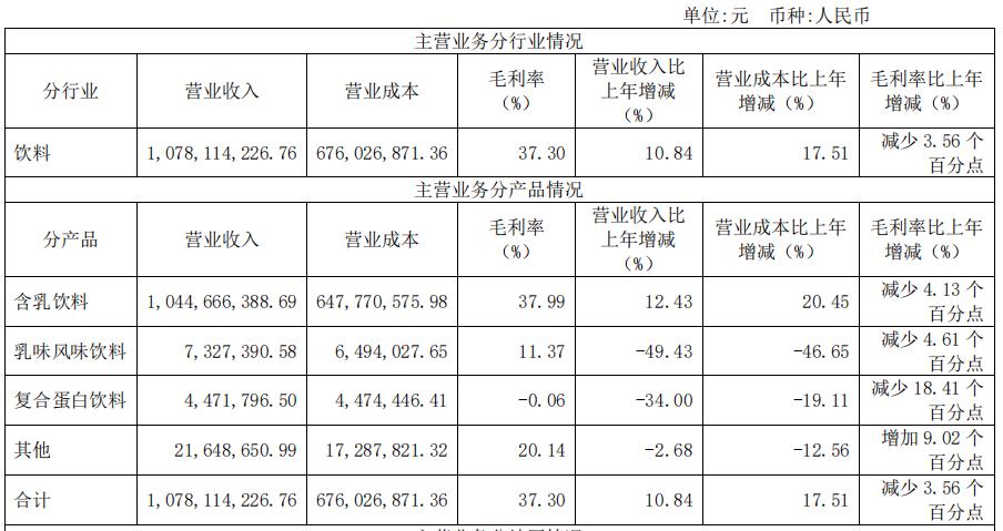不过据Foodaily走访,这些新品主要在电商货架有售,线下渠道比较少见。但从财报数据上看,除含乳饮料外的其他三项(乳味风味饮料、复合蛋白饮料和其他)均有不同程度的营收下降,乳味风味饮料下降最明显,同比降幅达49.43%。