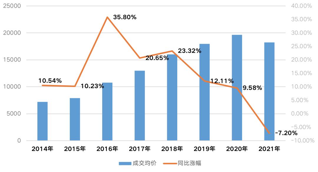 图:2014年以来合肥新建商品住宅成交均价及同比涨幅(单位:元/平方米、%)