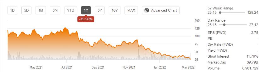 而就在市场对B站寄予无限瞎想之际,这家互联网新贵的股价,又在短短一年时间之内,从最高时期的超140美元,下跌到目前的不到30美元,股价跌幅超过80%。