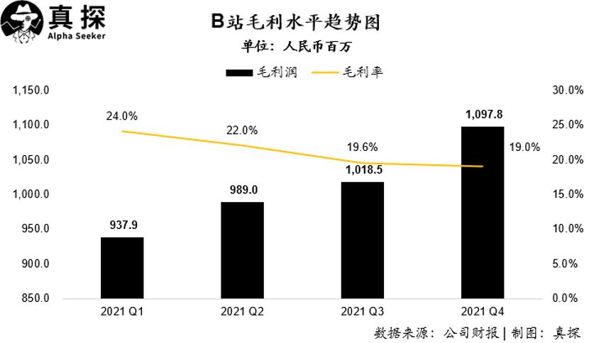 随着直播、电商等相对低毛利业务在B站营收中占比持续提升,公司毛利率水平呈现持续下降趋势。本季度,B站毛利率达到历史新低的19%,较年初的24%下降5个百分点。显然,B站在收入端多元化的增长需求,直接拉低了公司整体的毛利水平。