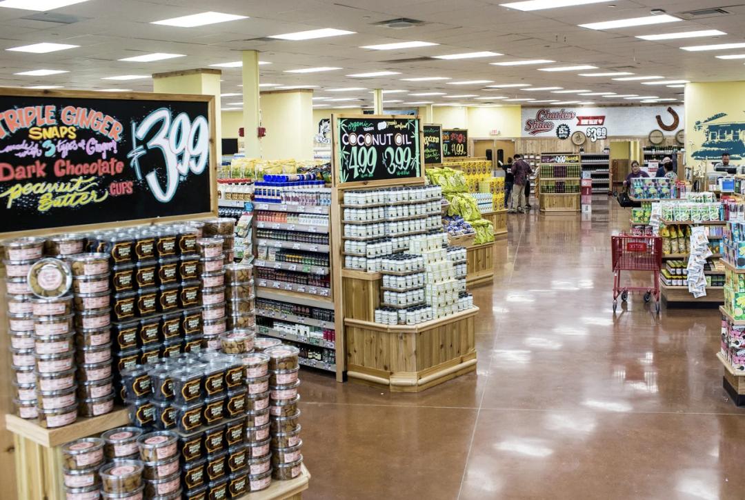 在门店装潢上,Trader Joe's 也非常「复古」。它会用木质风格的货架,更暖的灯光,手绘风格的商品、价格标签。总之,一切都与「冰冷的科技感」拉开距离。