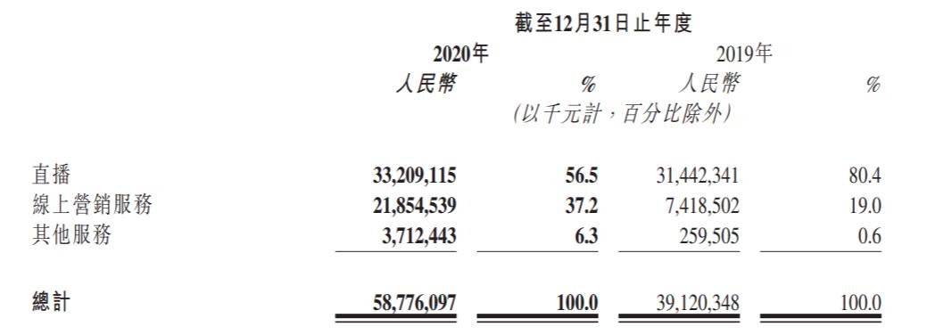 财报数据显示,2020年快手直播打赏部分收入达到332亿,广告服务收入达到219亿,来自电商抽成为主的其他服务收入达到37亿,这三项收入在2019年分别是314亿、74亿和3亿,广告和电商方面的收入增速惊人。