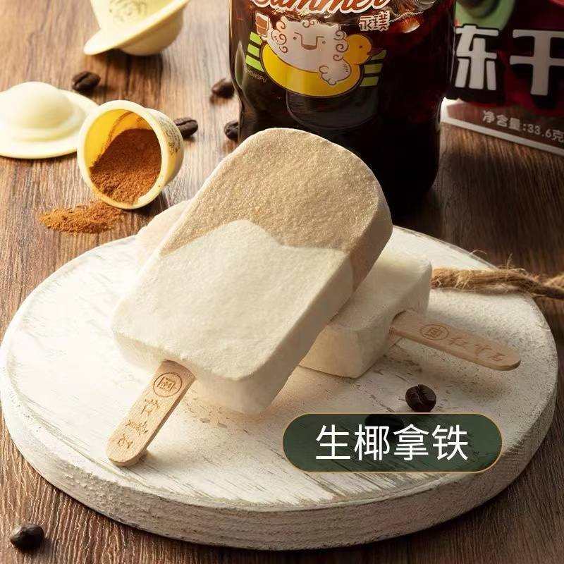 如今,东北大板不但包装高级了,价格也“支棱”起来了,比如这款新品单价达到了近10元/支,蓝莓、榴莲、生椰等原料使产品层次变得更加丰富,和咖啡品牌永璞的联名也使得这个东北品牌变得潮起来。