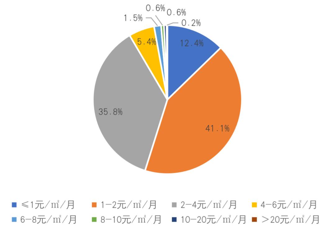 其中10-20元/㎡/月价格段中北京、上海两市合计占比近60%,一线城市高物业费垄断明显。