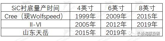 从市占率角度看,山东天岳作为一家中国公司,挤进了全球前三,很不容易。但这也并不表明,国内在半绝缘型衬底方面已经追上了美国。从技术追赶时间上看,国内企业和美国企业的差距从过去的10多年缩短至10年以内。同时也要正视差距,Cree(现Wolfspeed)和II-VI分别于2015年和2019年实现了8寸片量产,而山东天岳目前仍不具备量产能力。