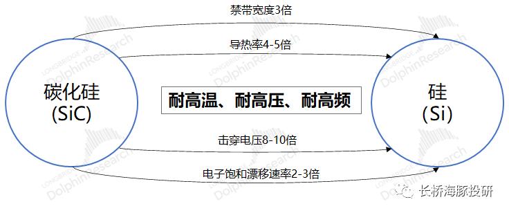 原本的电子器件,主要以硅原料来做,比如我们通常说的“芯片”、“半导体”、“电子零部件”等。然而随着新能源汽车、光伏等的发展,对于电力转换效率提出了更高的要求。相比于硅材料而言,碳化硅材料具有耐高温、耐高压、耐高频等特性。不仅能适用在新能源汽车等领域中,还能实现节能增效的表现。因此,随着新能源汽车等领域的高速发展,势必会提升对碳化硅(SiC)的需求。