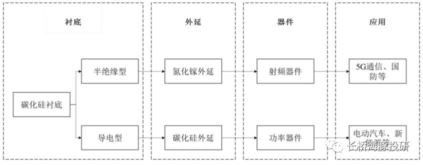 从产业链角度看,碳化硅(SiC)类器件的制造,主要包含“衬底-外延-器件制造”三个步骤。
