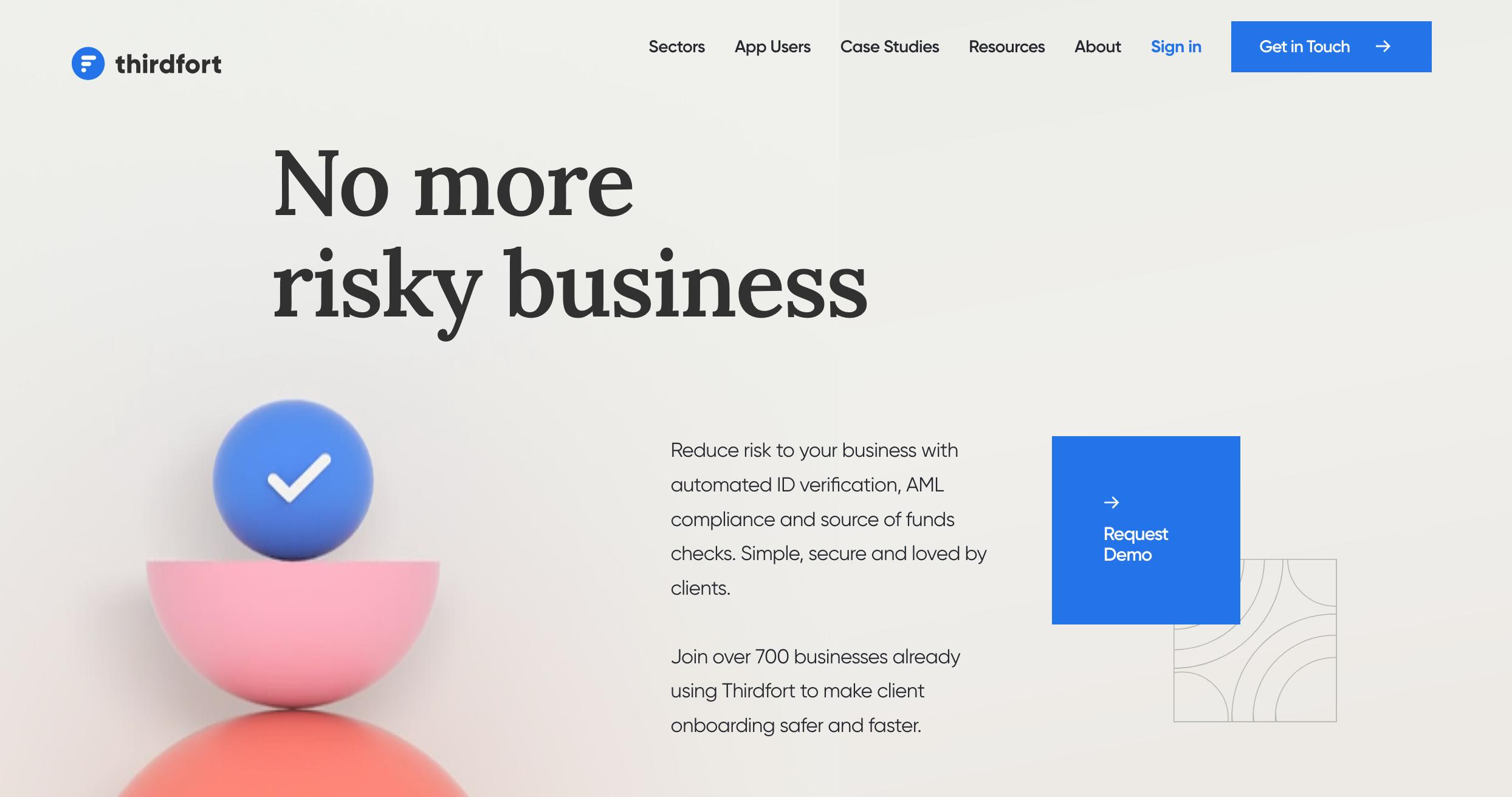 这让ThirdFort有了崭露头角的机会,该公司提供了一个包含多种资源的大数据工具包,如来自LexisNexis、ComplyAdvantage、Companies House等公司的数据,可以收集(并由客户挑选),以提供有关个人及其资金来源的不同数据点。Thirdfort首先开发了解决法律和房地产市场上公司需求的工具。