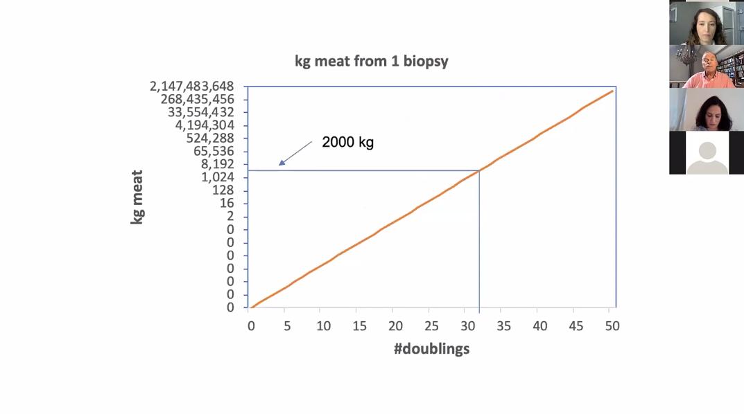 细胞分裂次数与产量的坐标系,来源:New Food Conference webinar 2020