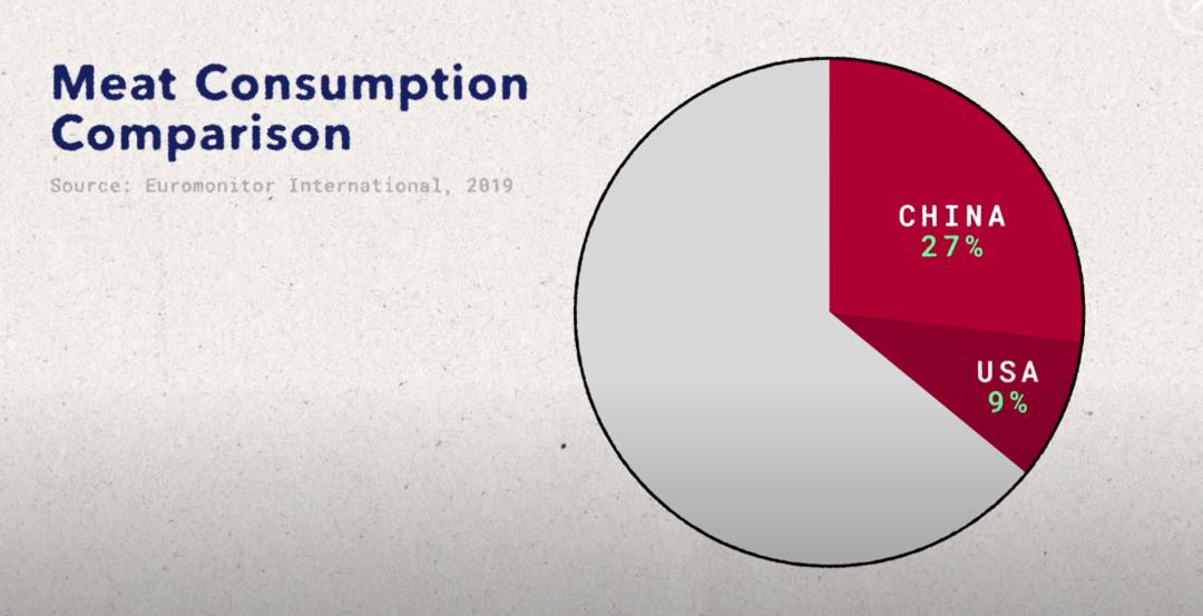 各国肉类消耗占全球肉类消耗的比例,来源:Euromonitor
