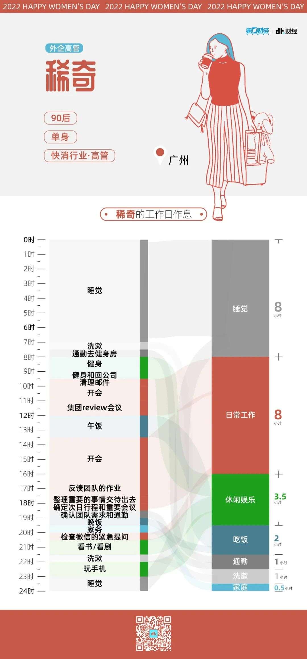 基于这样的出发点,我们跟踪了不同阶段职场女性一天的日程,用可视化呈现她们一天的生活状态,并跟她们聊了聊工作的意义。