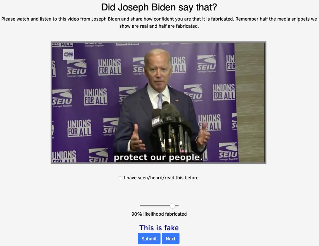 论文作者称:「伪造的政治演讲视频比伪造的文字记录更容易识别,这一发现强调了重新让人们忆起常被遗忘的『眼见为实』格言的必要性。」
