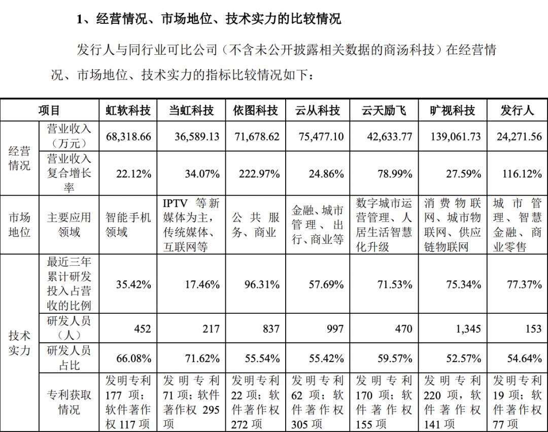 多家AI独角兽各项情况对比,图源格灵深瞳招股书