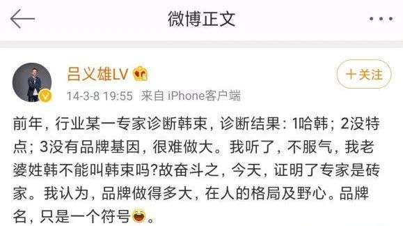 韩流降温,韩束创立之初想蹭韩流热度的意图却欲遮还显,吕义雄的辩白显然也有点力不从心。但吕义雄仍应庆幸,比起丸美的孙怀庆身为地道重庆人却改名“小林庆夫”后被曝光这样的闹剧,他的“韩”束看起来还是比较中规中矩的。