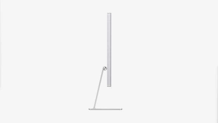 Studio Display 采用窄边框全面屏设计,自带支架可实现最大角度 30 度的可调节范围。