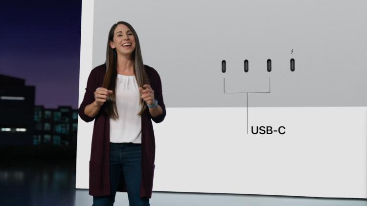 接口方面,Studio Display 提供 3 个传输速度最高均可达 10Gb / s 的 USB-C 端口,以及一个雷电接口用于连接Mac Studio。这个雷电接口还能以 96W 的功率向 Mac 笔记本电脑供电。