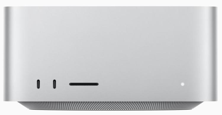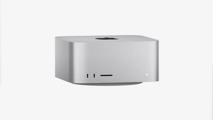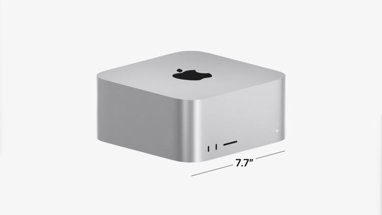 Mac Studio 机身采用铝金属压制一体成型工艺,底边长仅 7.7 英寸,高仅为 3.7 英寸。