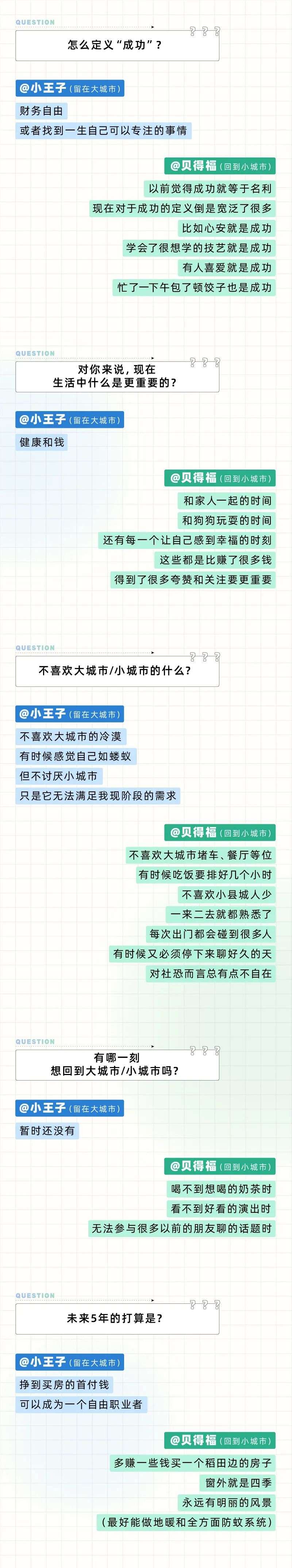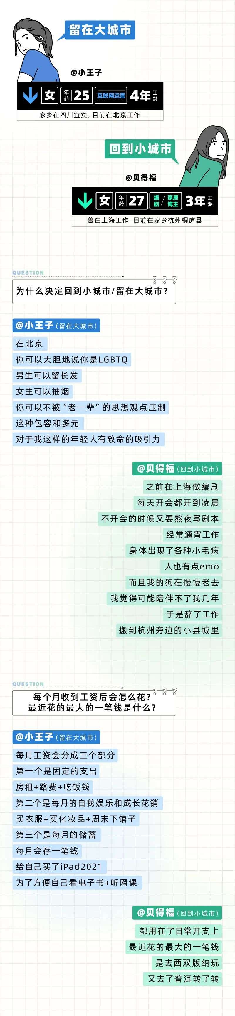 关于留在大城市还是回到小城市的问题,更像是一场“搏一搏单车变路虎”的赌博。于是,我们 找来了2位已经下注的年轻人,让他们分别回答一模一样的16个问题 ,看看他们不同选择的背后,都发生了什么变化。