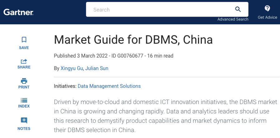 2022年3月3日,Gartner发布了最新的《数据库市场指南》(Market Guide for DBMS, China)。报告指出,中国数据库行业将加速增长并逐步向云端迁移,未来四年中国数据库行业向公有云迁移的速度将超过全球平均水平,甚至会超越美国。
