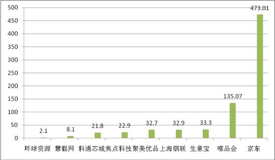 图二:主要B2B与B2C网站2015年6月23日市值对比(单位:亿美元)